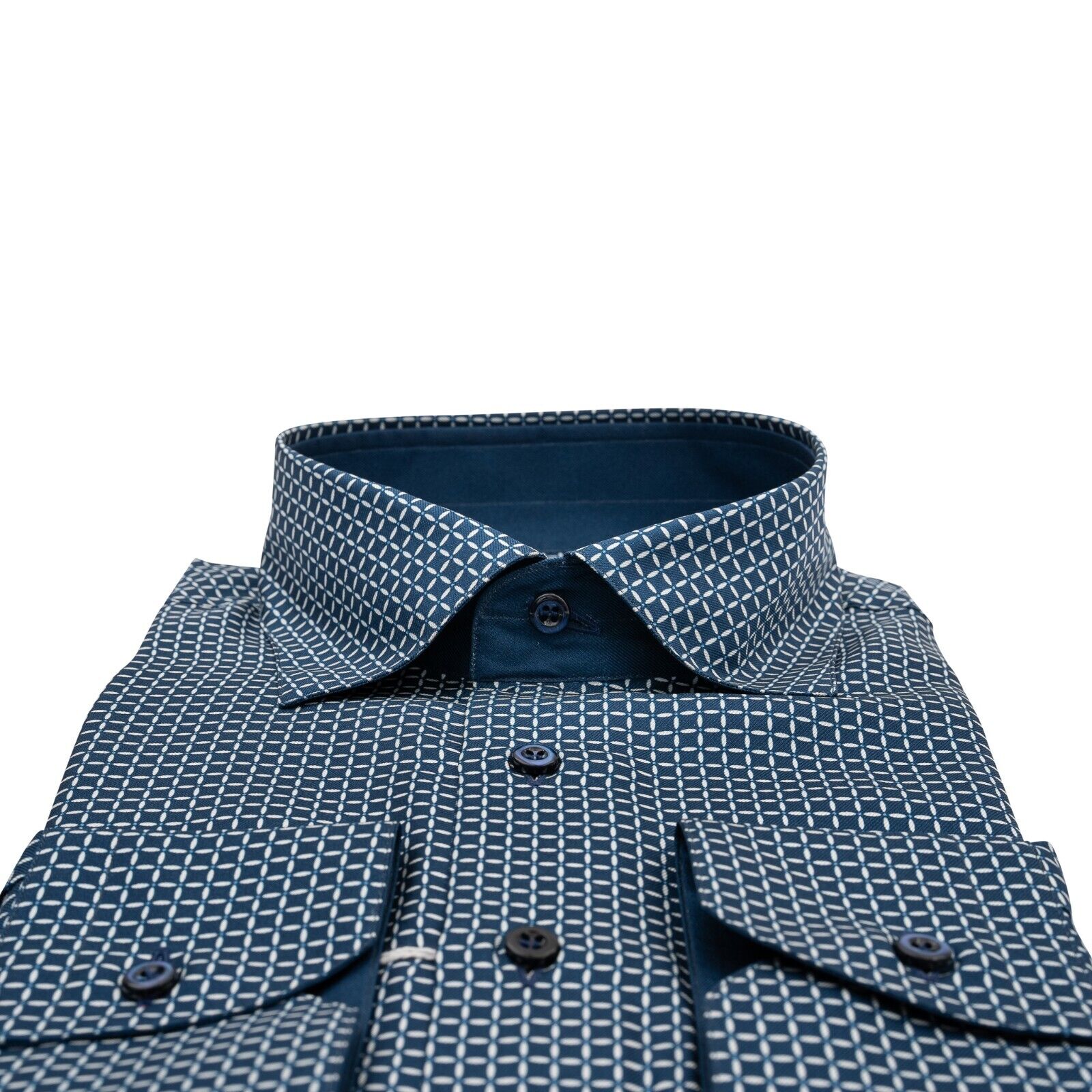 LUXURY MAROL BOLOGNA Geometric Shirt Blue 100% COMO SILK Satin 15.75 - 40