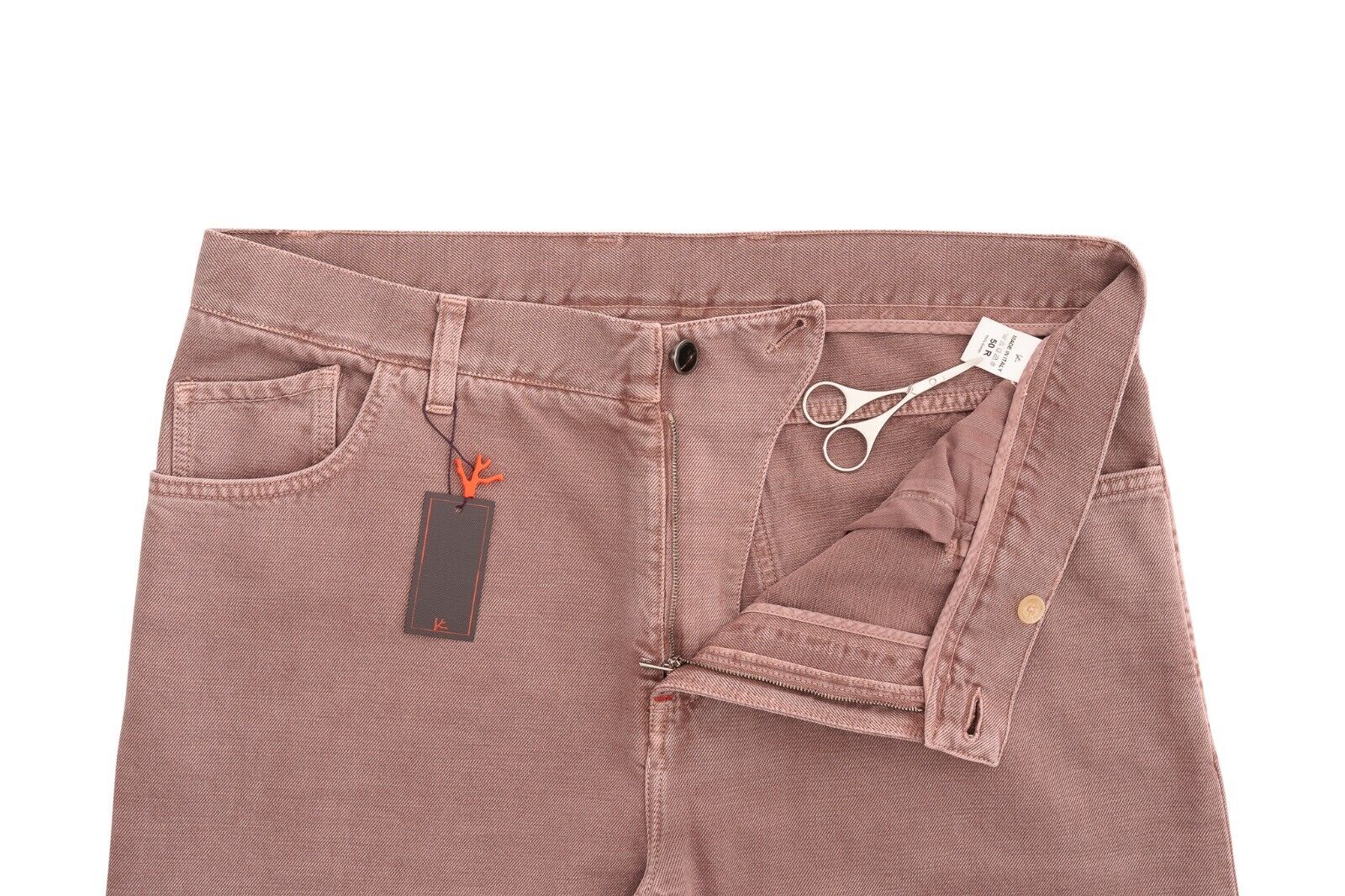 ISAIA "Barchetta Denim" Trouser Pant Drill Dyed Cotton Pink 34 US / 50 EU