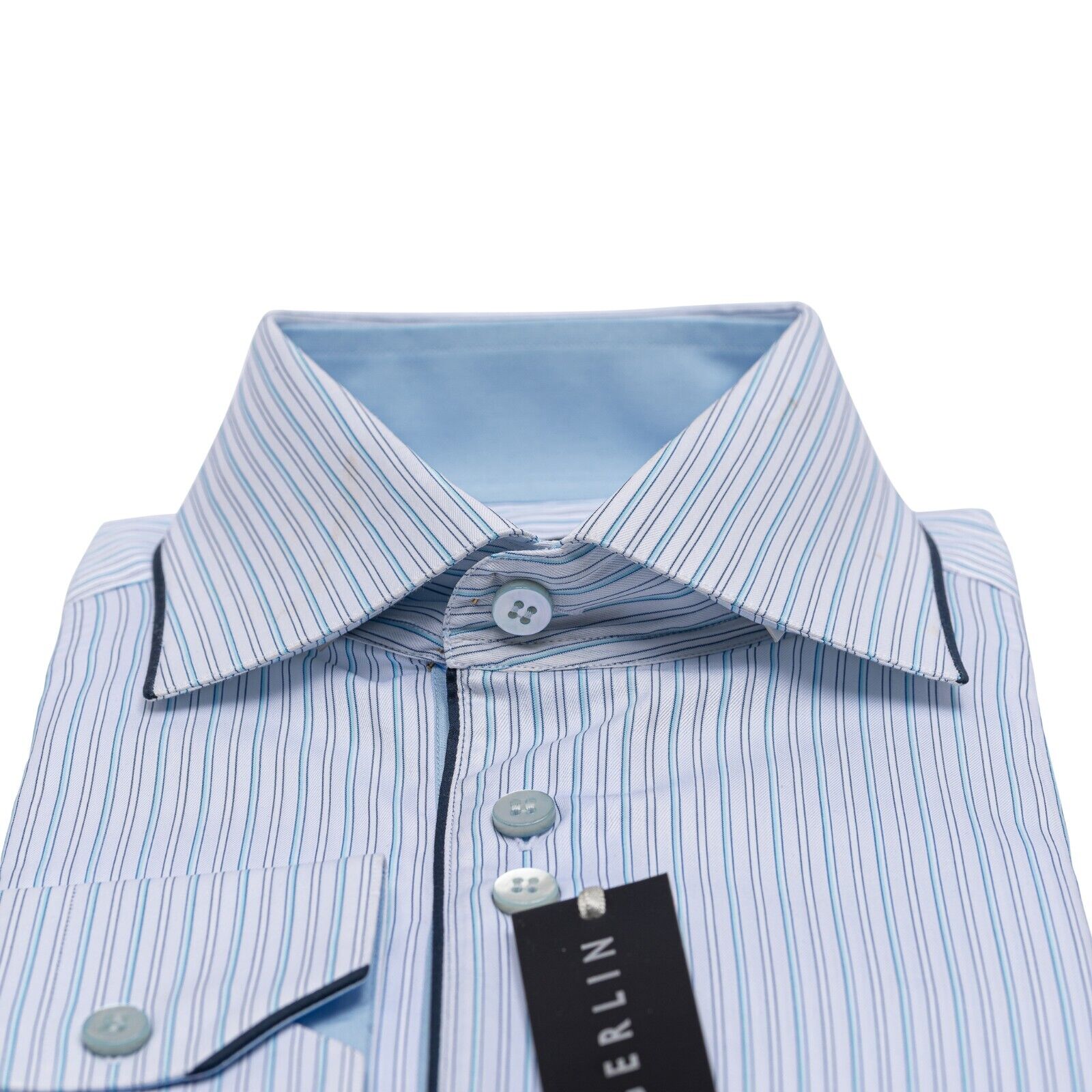 LUXURY GERLIN Shirt Striped Blue Twill Cotton 16 - 41 2AB